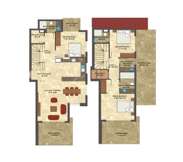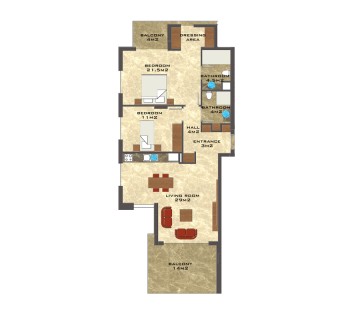 The residence consists of 117 apartments of various layouts: 1+1 (65-83 m2), 2+1 (108-138 m2), as well as 3+1 duplexes (161-201 m2).